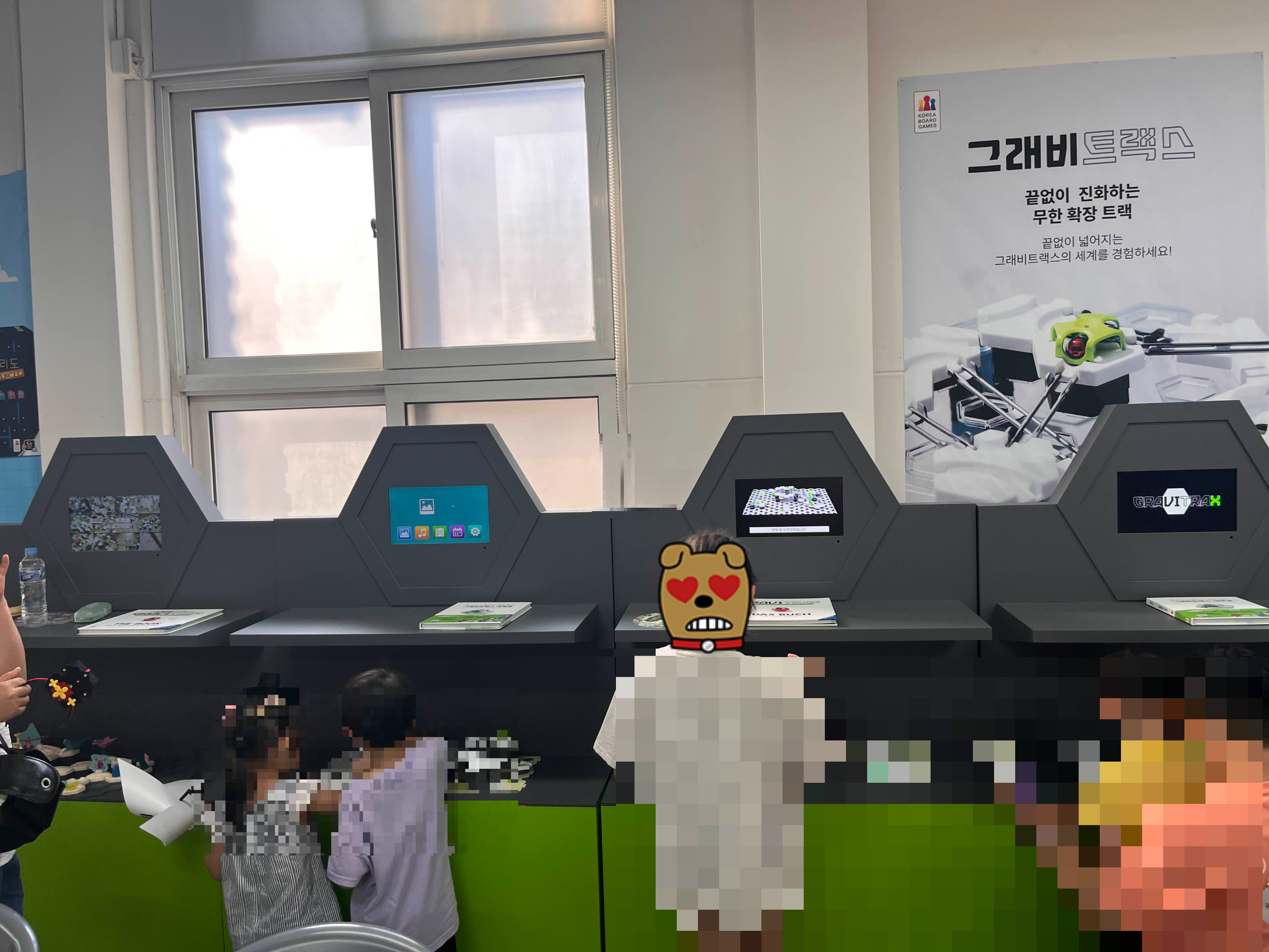이곳은 보드게임이나 조립해서 만들기 게임 같은것을 하는 곳이다. 그래비트랙스(?) 라는 회사에서 나와서 도구 같은 것을 제공하고, 설명해주는 것 같았다.