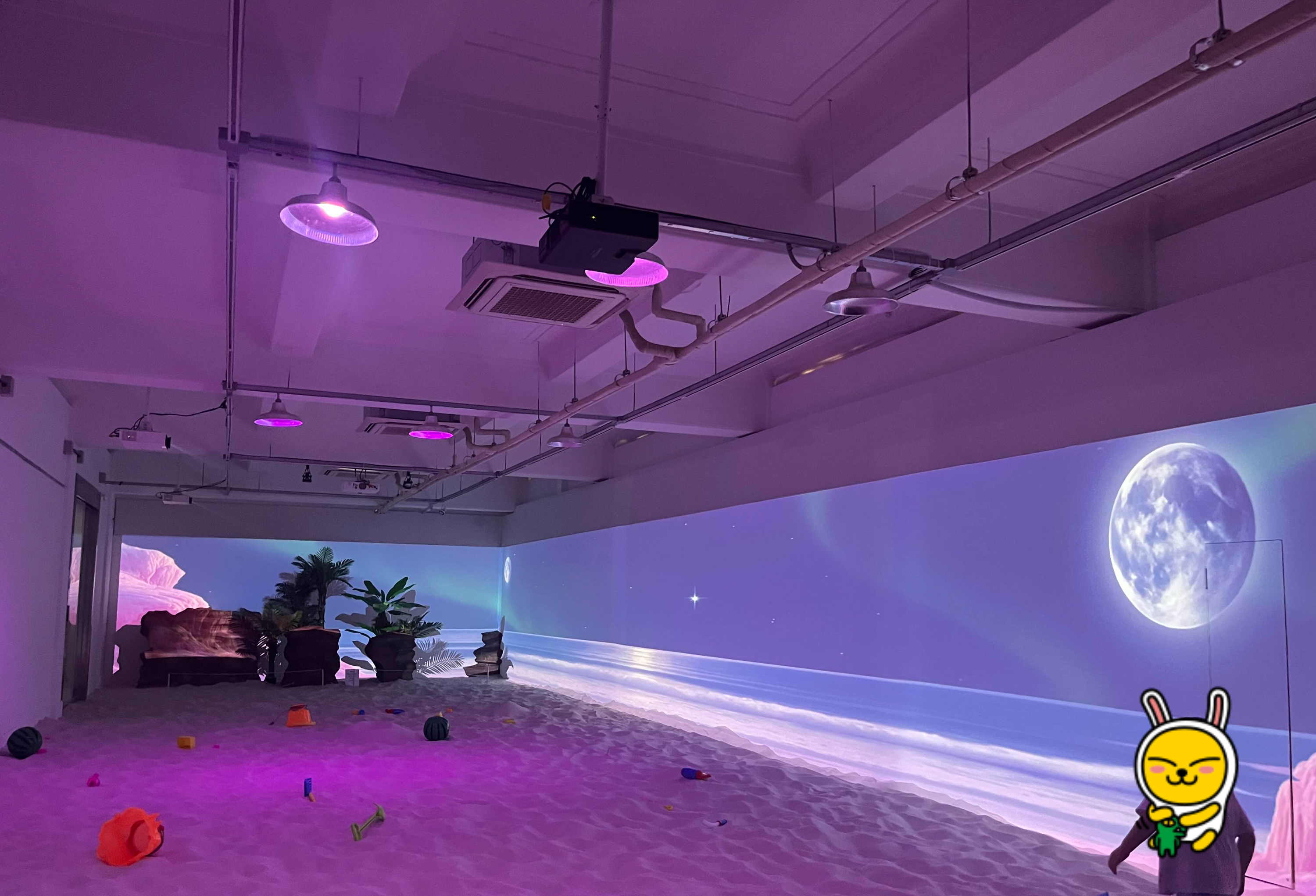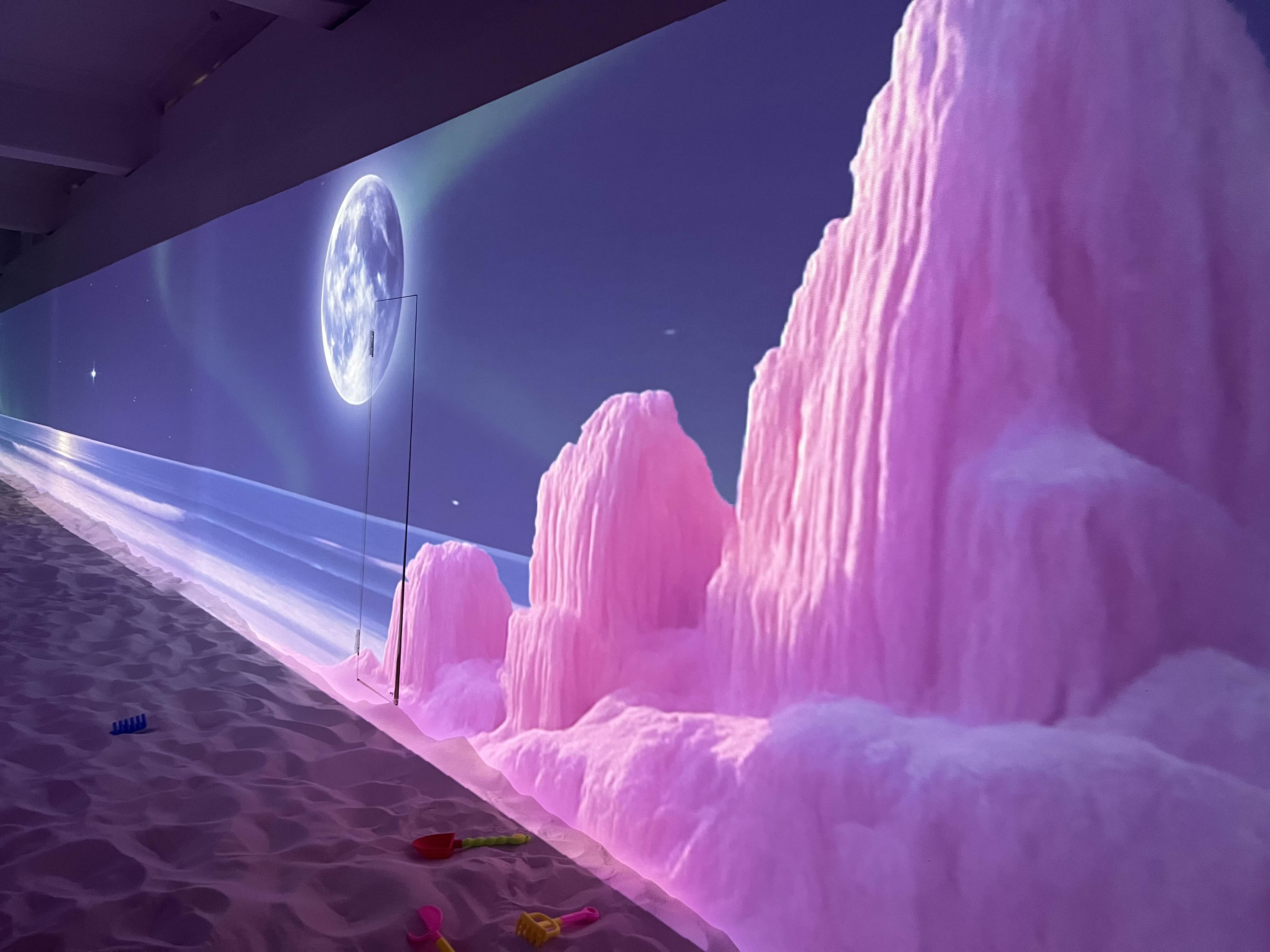실내 공간에 모래사장과 모래 놀이 도구를 비치해 두고, 옆에 아름다운 지구와 분홍 산(? 얼음) 영상을 띄워놓은 곳이다. 인원 제한이 있고, 애들만 들어갈 수 있어서 공간대비 아아아주 한적하게 놀고 있을 수 있는 곳이다.