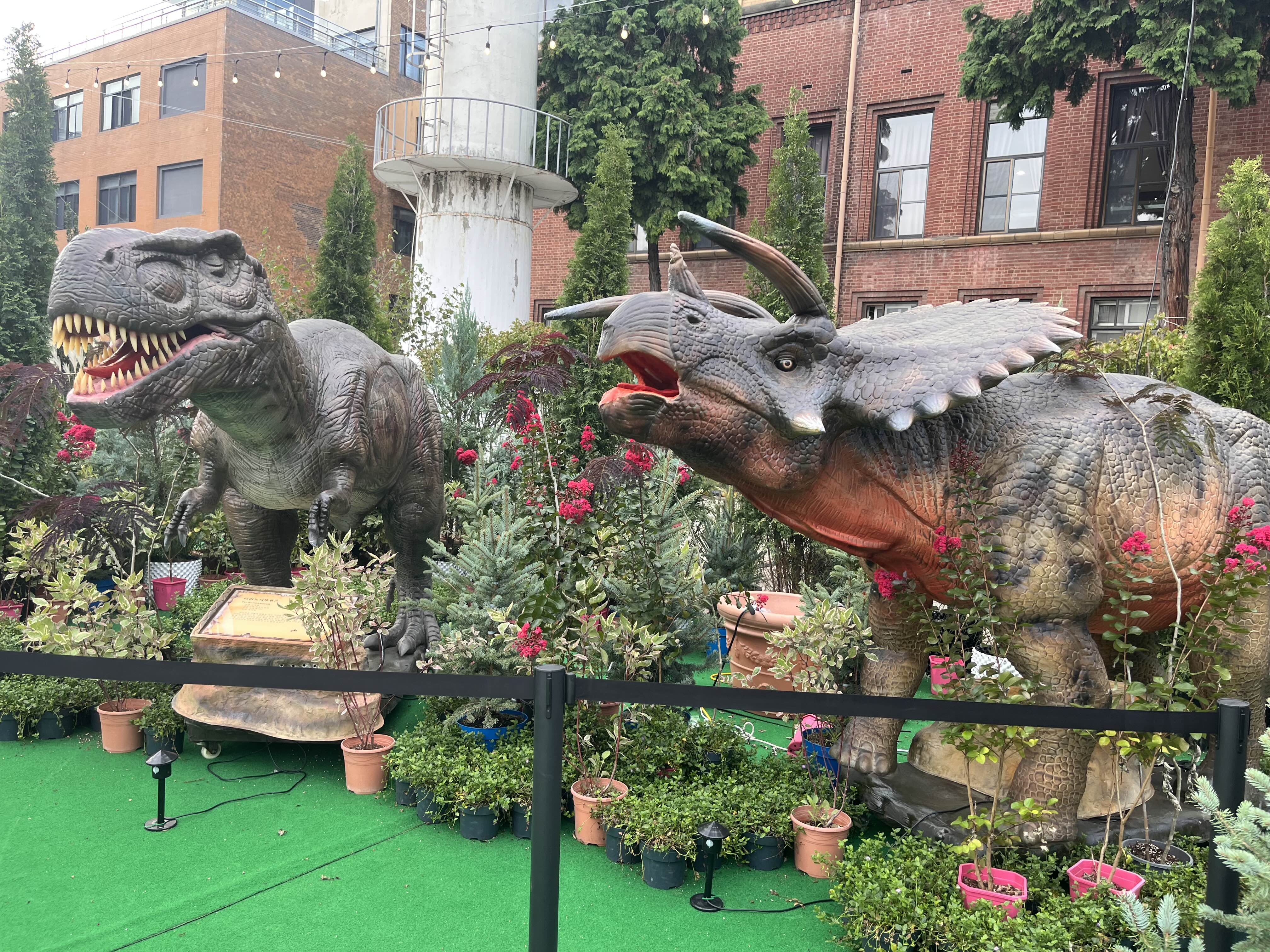 움직이고 소리나는 공룡도 있었고, 또봇 풍선도 있었다(남자애기들 엄청 좋아할듯 ㅎㅎㅎ). 꽃들도 많아서 여기저기 사진 찍을 곳이 많았다(애들이 협조를 안해서 그렇지 ㅎㅎㅎ). 앉아 있을 수 있는 의자도 있어서 저녁에 와서 커피한잔 해도 좋을 듯 했다. 밤 10시까지니까 저녁 야경도 좋을 것 같았다.