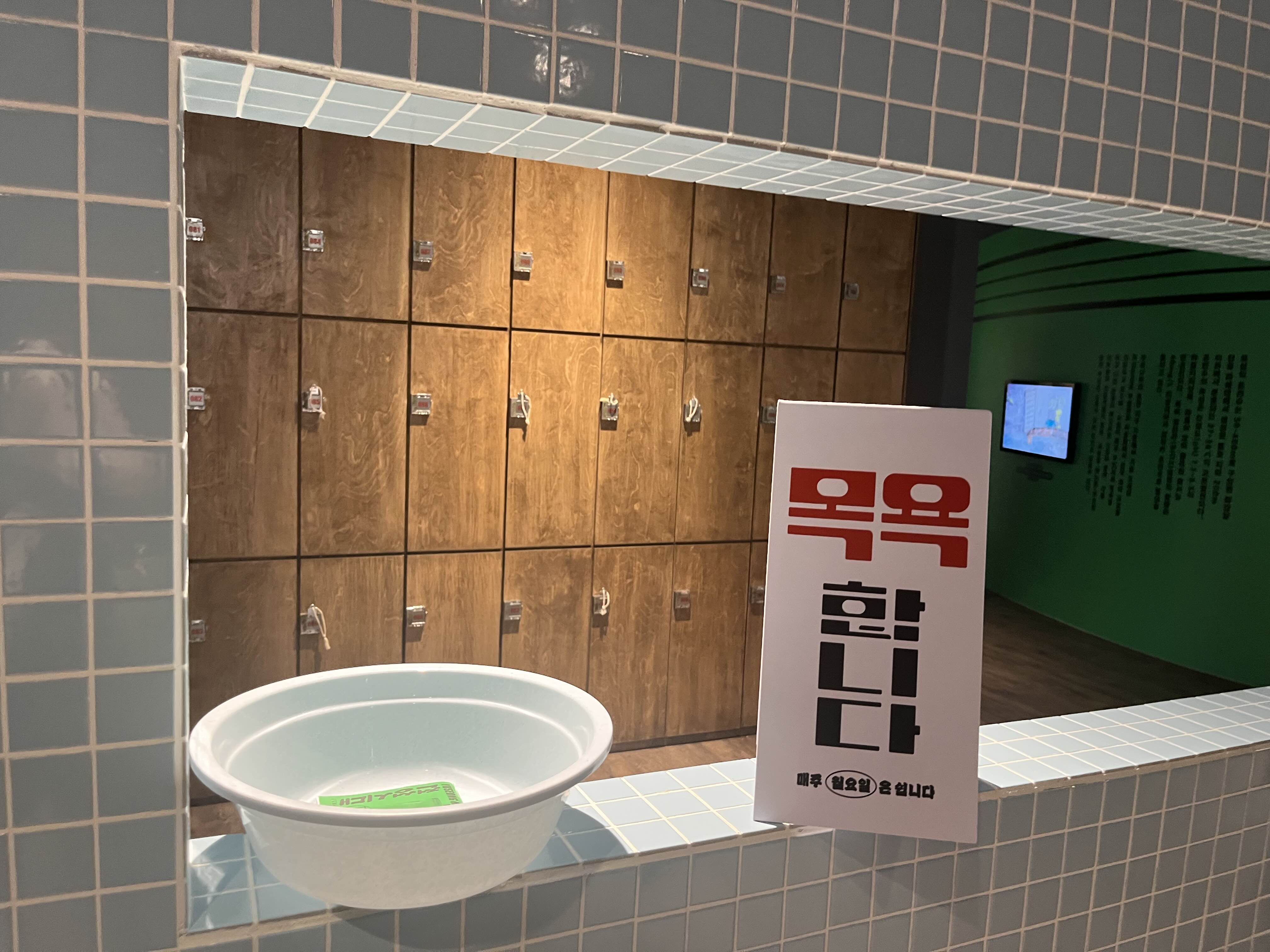 예전 대전 시립박물관에서 했던 행사라고 하던데, 지금은 사라진 유성온천과 호텔을 상징하는 물건들을 전시해놨다. 이게 바가지고, 때를 미는거고 등등을 설명했지만 목욕탕이 뭔지 모르는 우리 애들은 딱히 관심이 없어해서 빠르게 지나갔다.