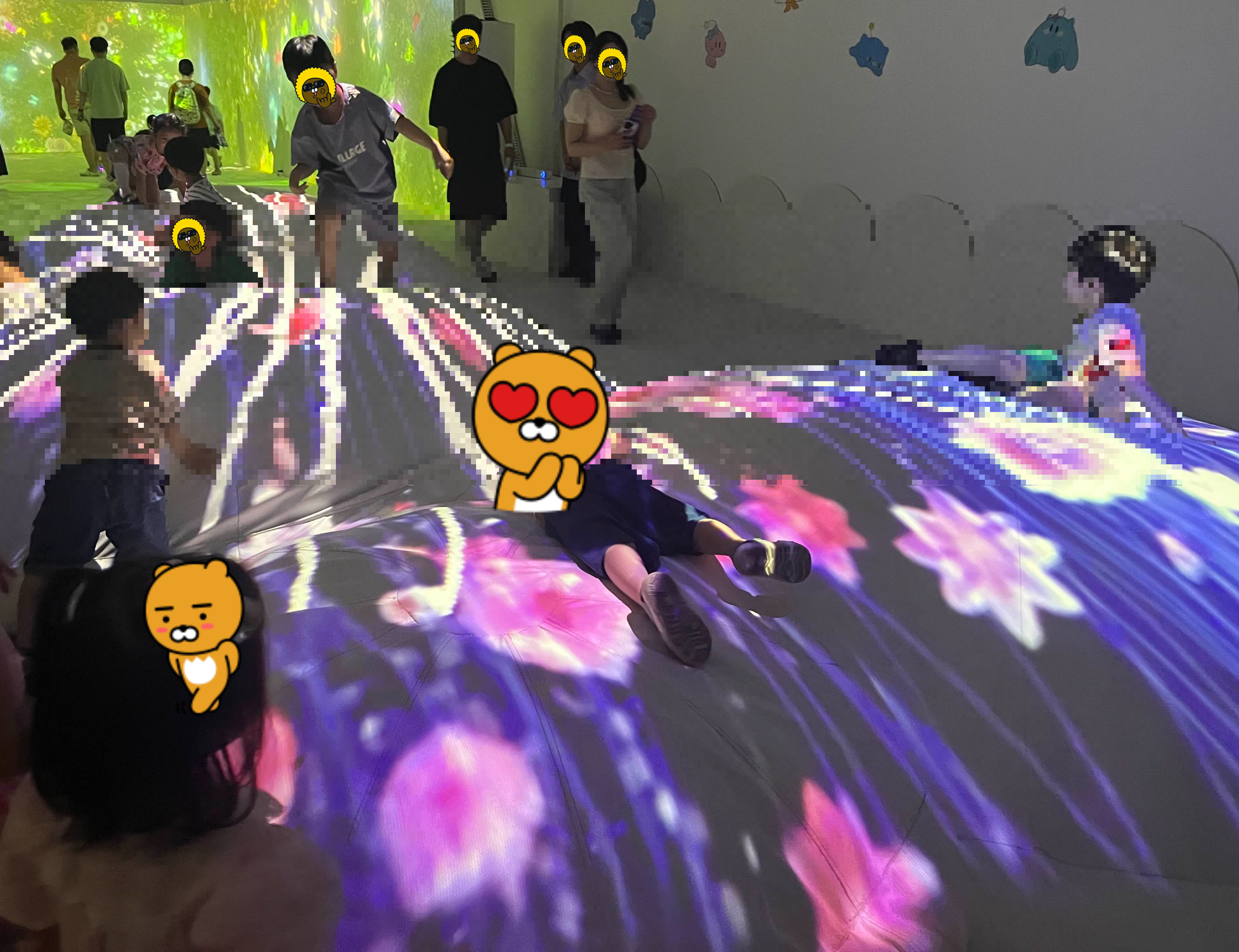 주의 사항은 최대 30명으로 인원제한이 있고, 이 인원이 들어가서 20분 놀고 나오고 다음 팀이 들어가는 형식이어서 줄을 서 있다가 들어갔다. 다른 곳을 보다가 슬슬 여기로 왔는데 줄이 있어서 당황했고, 20분을 기다리라고 해서 아 어쩌지 고민했는데 부모 중 한명이 줄을 서 있고, 애들은 다른 부모랑 바로 옆방(? 건너편방)에 있는 꿈돌이 언덕에서 놀다가 오니 기다릴만했다.