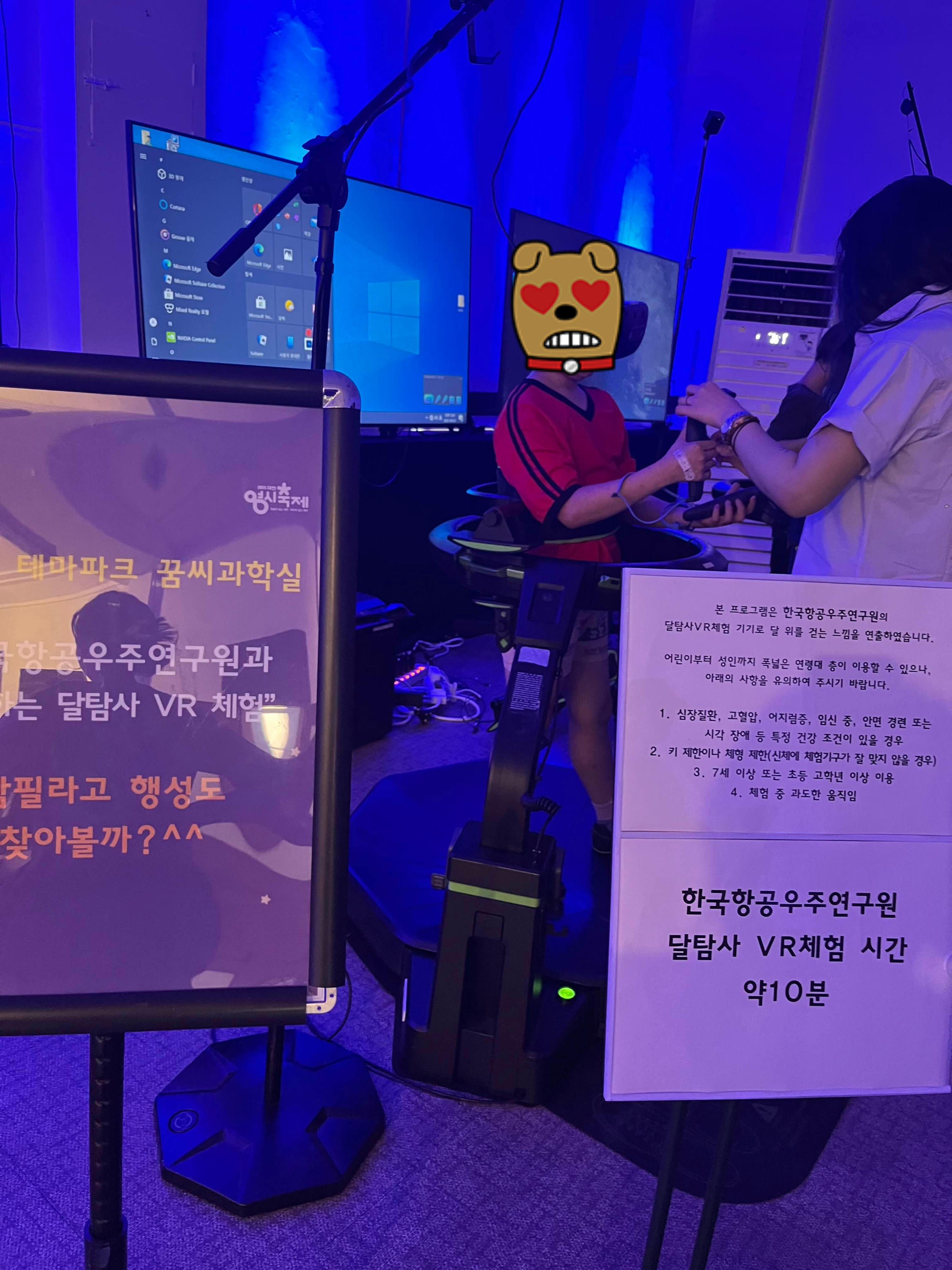 이것저것 실험 도구들도 몇개 있었고, 한국 항공 우주 연구원에서하는 달 탐사 VR 체험도 있었다. 이건 재미있을 것 같아서 해보려고 했는데, 7세 이상이라고 써 있기도 했고, 전화번호를 적고 예약을 할 수 있는 것 같았는데, 키가 130인가 135 이상이어야 된다고 하셔서 깔끔하게 포기하고 나왔다. 성인도 되는 것 같아서 원래라면 신랑이 해보고 싶어할텐데, 오늘은 몸이 안좋아서 아쉽게 포기했다.