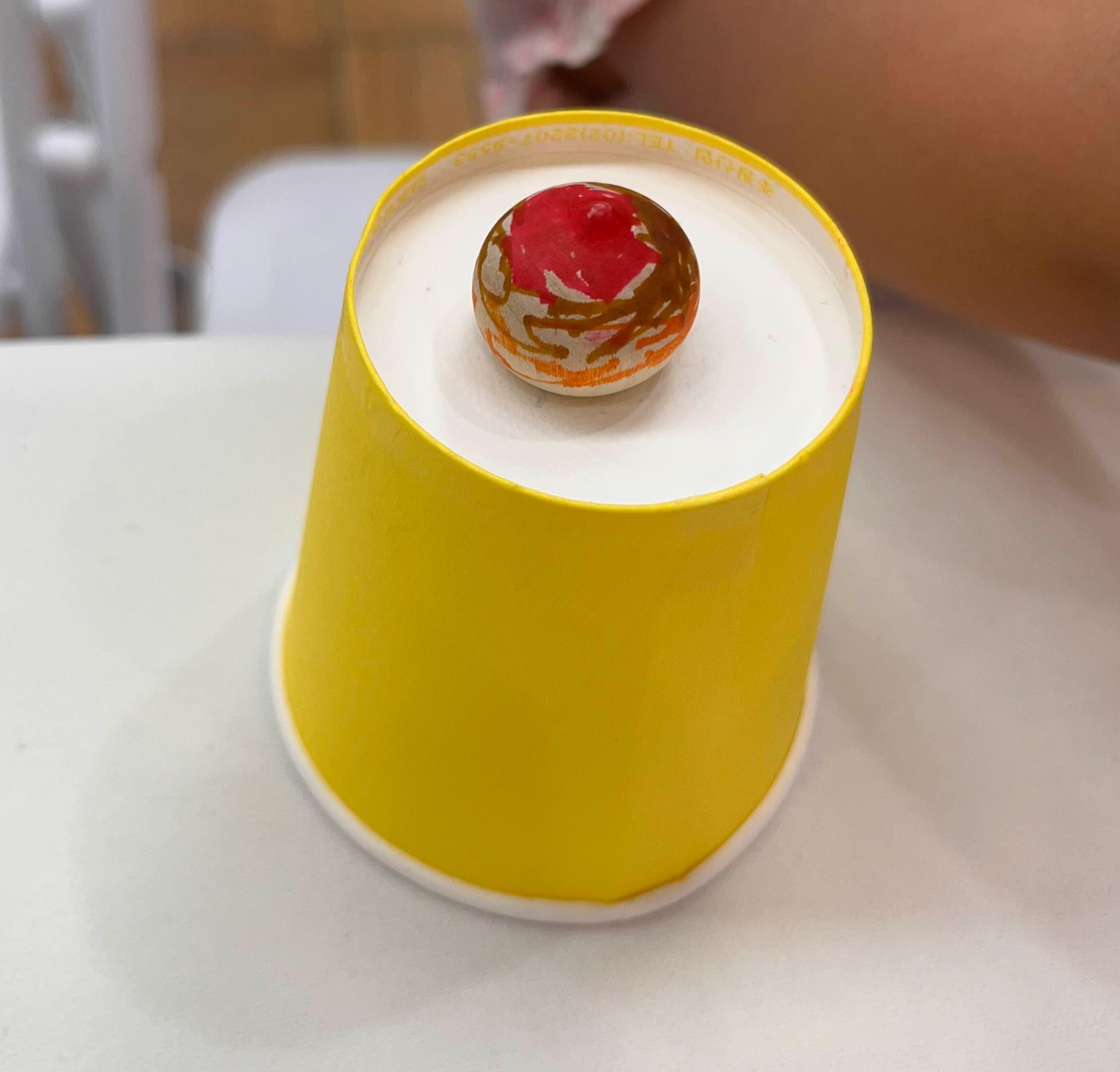 도토리 팽이 만들기. 처음에는 종이컵에 팽이를 붙여놓는건가? 뭐지? 했는데 동그란 팽이기 때문에 색칠하기 쉽게 종이컵에 구멍을 뚫어 꽂아 놓은 것이었다ㅎㅎ 우리애는 저정도만 칠했는데, 선생님이 만들어 놓으신 샘플은 엄청 귀여워서 나도 한개 만들어 보고 싶을 정도였다(그치만 애들 할 것도 없다길래 차마 못해봄 ㅎㅎㅎ 젊은 커플들은 하던데 ㅎㅎㅎ). 조금 큰 아이들한테는 어떤 모양으로 하면 돌아가면서 더 잘 보이는지를 설명해주시기도 하고, 애들이랑 대결도 하셔서 애들이 재미있어했다.