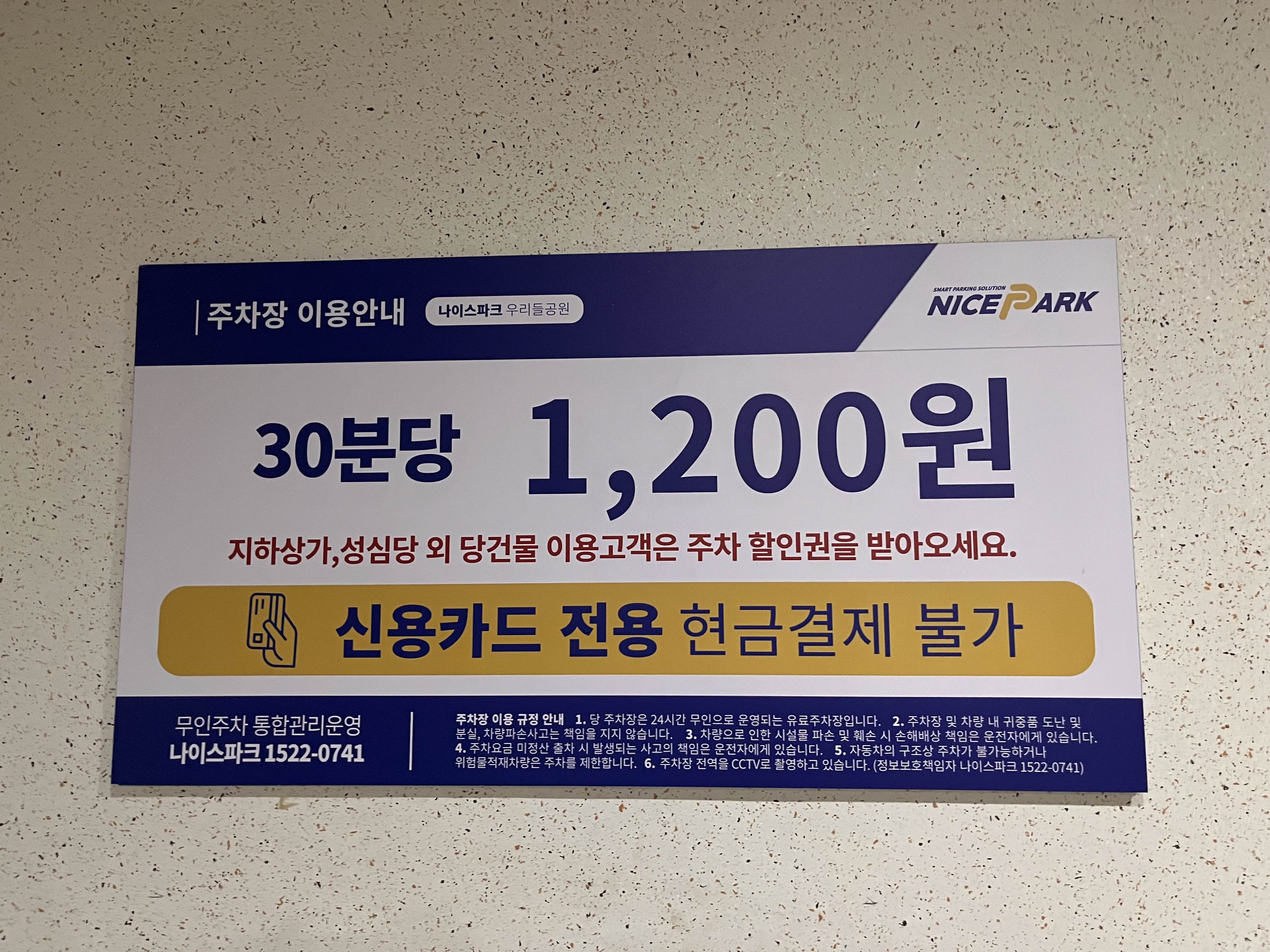 우리들공원 주차장은 다행이 자리가 있었지만 여기도 지하 1층, 2층은 만차였고, 어떤 차는 주차칸이 아닌곳에 주차를 한 사람도 있었다 ㄷㄷ 다행이 지하 3층은 자리가 좀 있어서 무사히 대고 나왔다. 30분에 1100원인줄 알았는데, 1200원이었다. 이렇게 오래 있을 생각은 없었는데 돌아와서 보니 주차를 6시간 30분 요금을 내야했다 ㄷㄷㄷㄷ 만오천 얼마였는데, 다행이도 지하상가에서 할인권 두장을 받아서 적용했더니 10800원을 내고 나왔다.